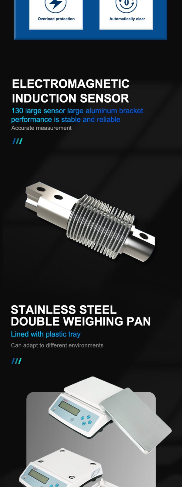 CIRI-CIRI Siri WT-X: paparan LCD definisi tinggi, asas ABS, kuali penimbang keluli tahan karat; 130 sensor besar, prestasi yang boleh dipercayai; perlindungan beban berlebihan; dengan pelbagai fungsi taring, mengira dan lain-lain. Bttey boleh dicas semula pilihan, di bawah cangkuk, port RS232 dwi-paparan.